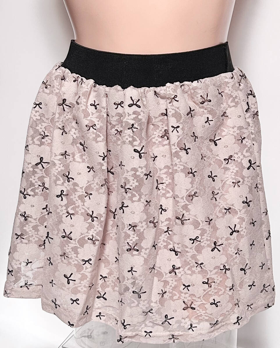 - [Buru/未使用] ブル 総レース リボン柄 ウエストゴム スカート (Sサイズ相当)