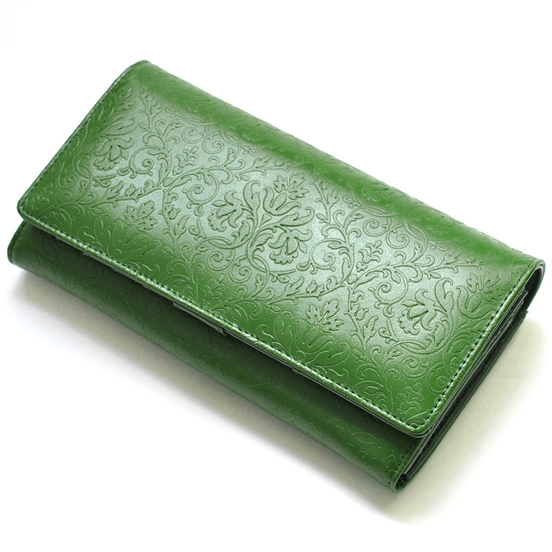 - 【MOMO】スマホも入る牛革草木柄大容量財布 グリーン×1個