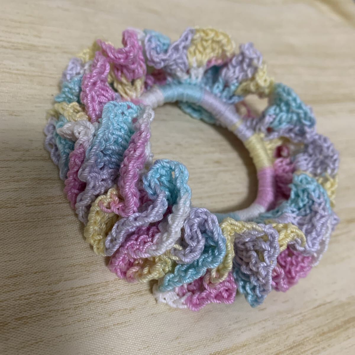 - 【d27】かぎ針 カラフル コットンキャンディ レース糸 フリル シュシュ