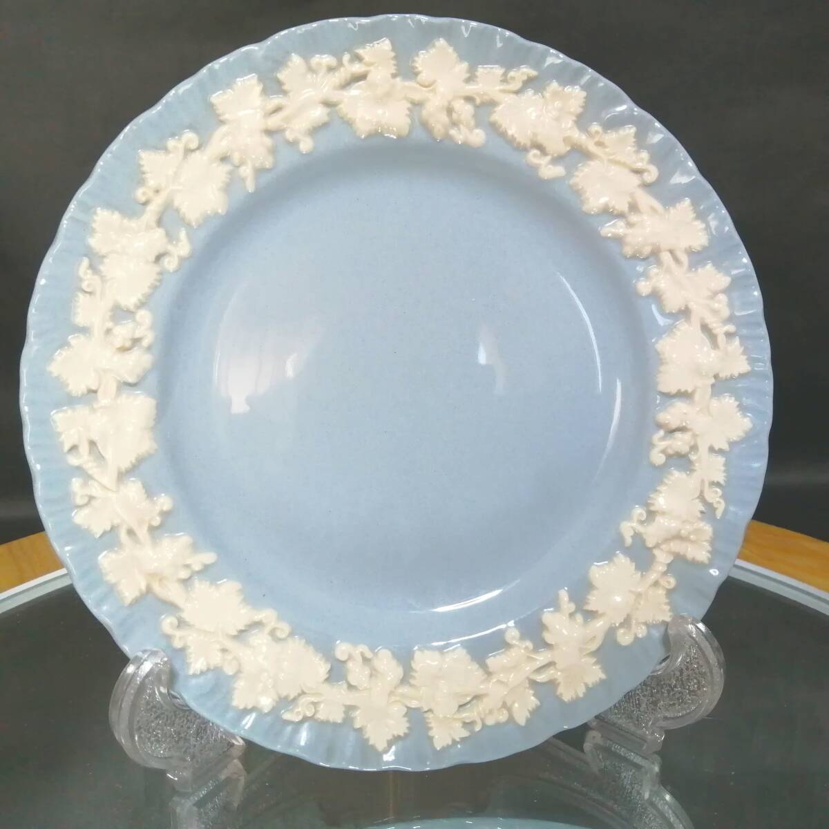 - 16CM 美品◇自宅保管 ウェッジウッド エンボスド クイーンズウェア クリームオンラベンダー プレート WEDGWOOD ※追加出品予定あり