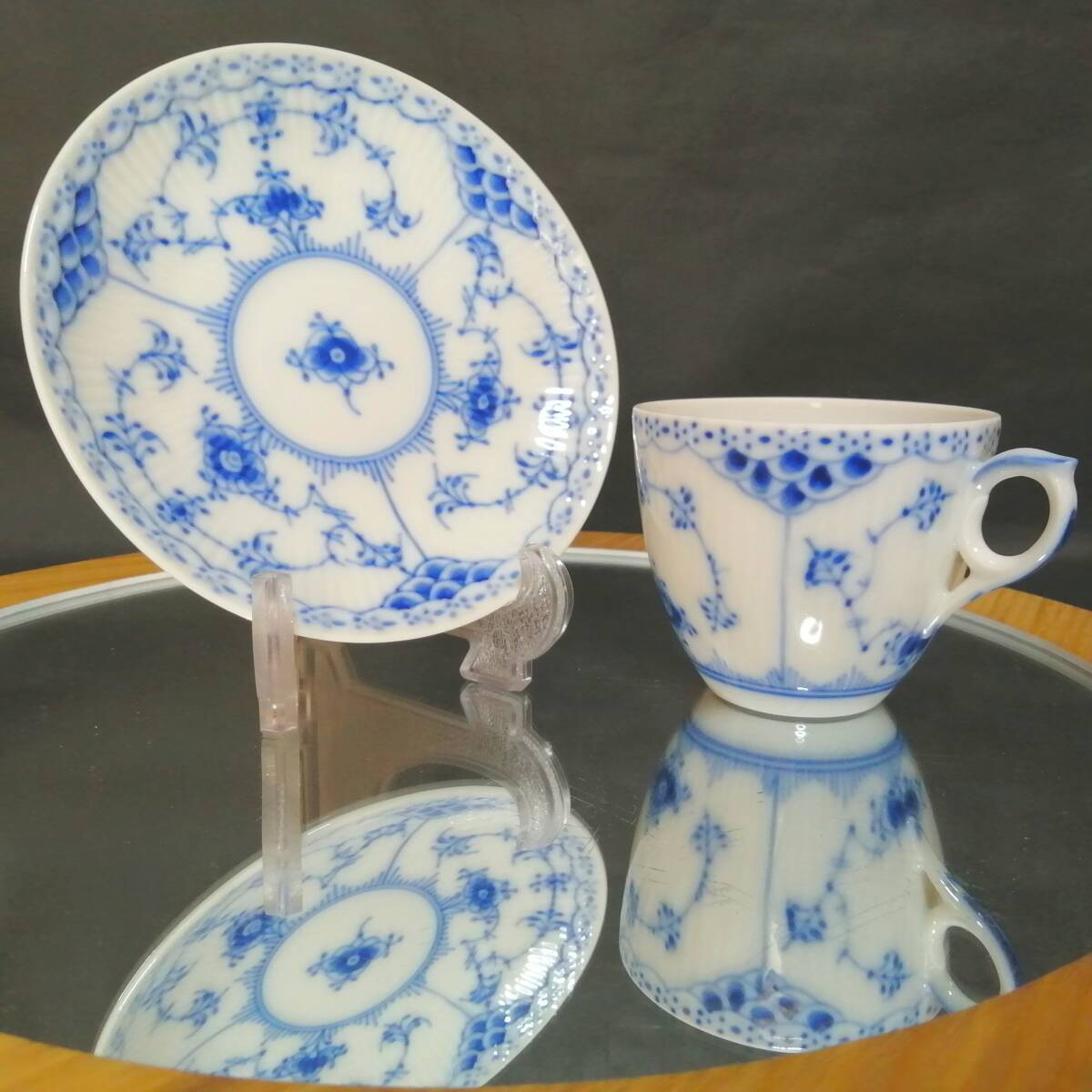 - DENMARK印有 未使用◇自宅保管 ロイヤルコペンハーゲン ブルーフルーテッド ハーフレース カップ&ソーサー ROYAL COPENHAGEN C