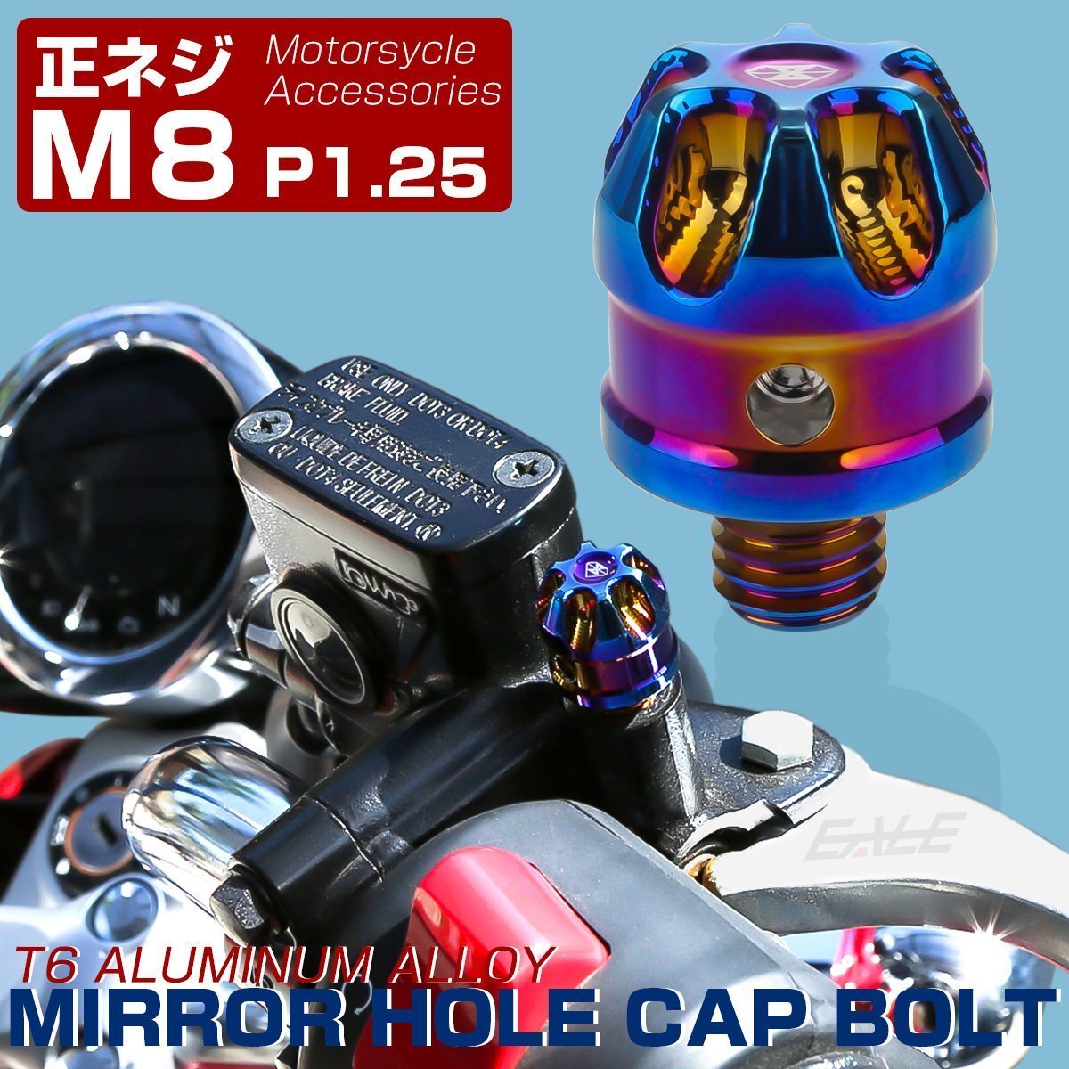 - M8 正ネジ P1.25 汎用 ミラーホールカバー デザインキャップ アルミニウムCNC削り出し 焼きチタン色 S-925-T