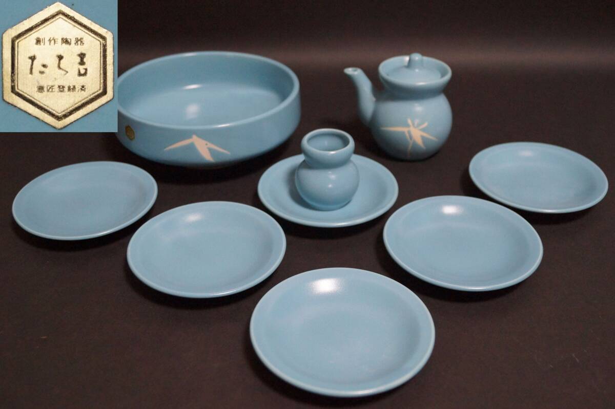- 【芸】たち吉造 盛皿(中鉢)/小皿(6客)銘々皿/醤油差し/楊枝入れ 漬物揃え 懐石道具 s70904