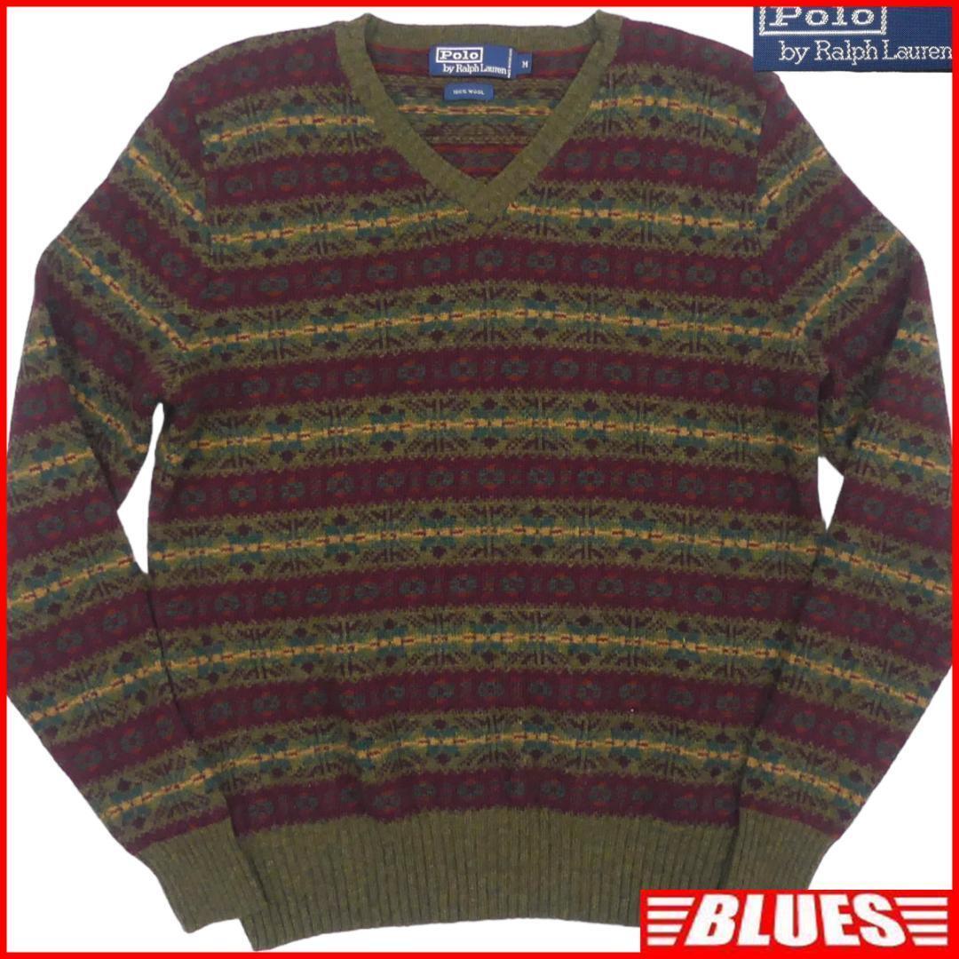- 即決★POLO RALPH LAUREN★メンズM ニット セーター ラルフローレン 緑 エスニック カーキ ウール