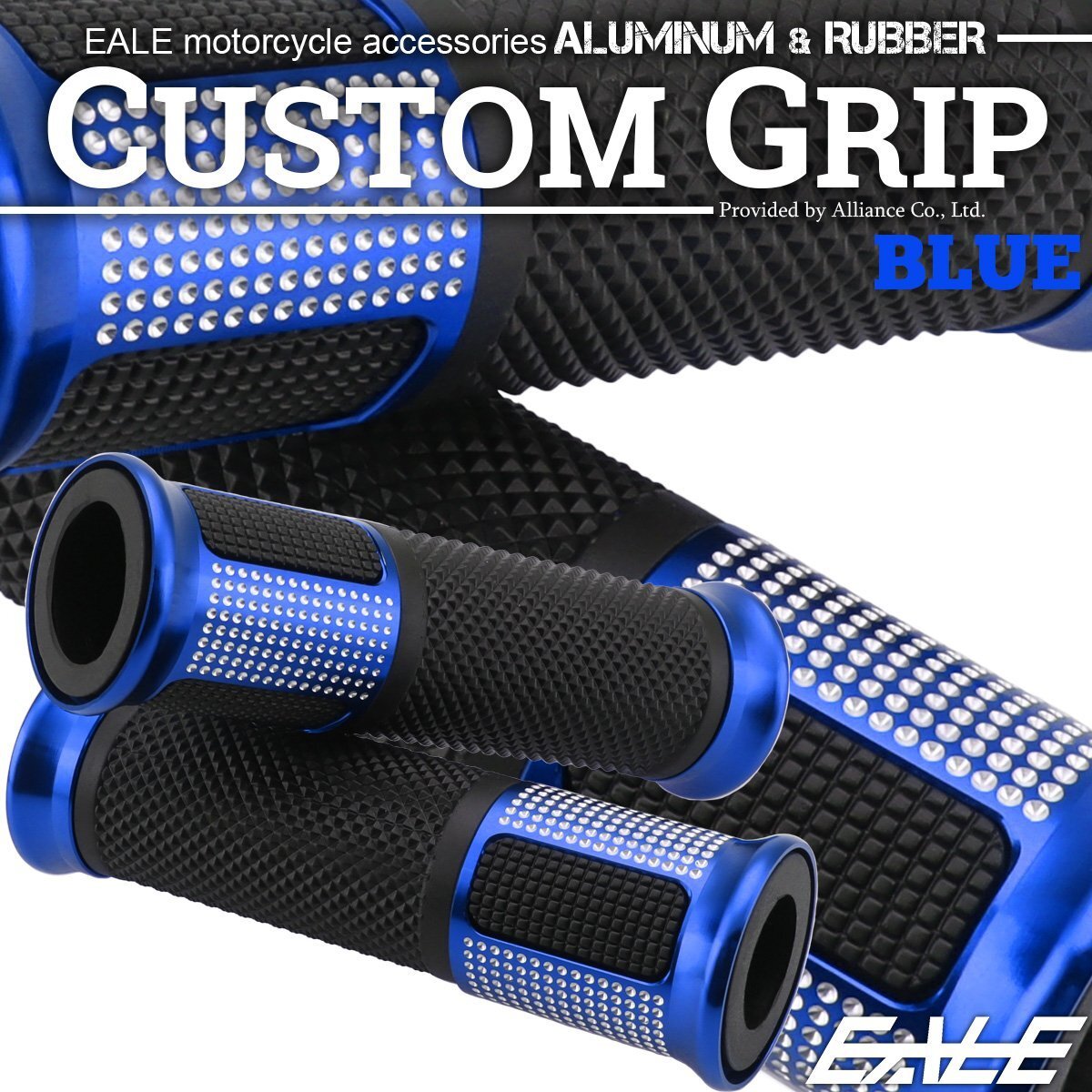 - バイク グリップ ハンドル アルミ ラバー 貫通タイプ 22.2mm用 ブルー 左右セット カスタム ドレスアップ S-574-B