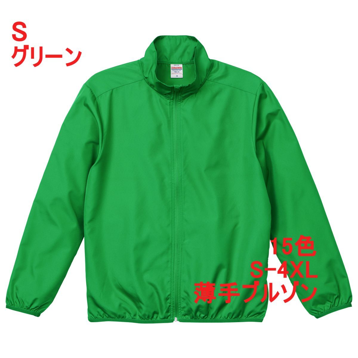 - ブルゾン S グリーン 薄手 ジップアップ ジャケット スタンドカラー 無地 定番 フルジップ ファスナー A675 緑 緑色 706101