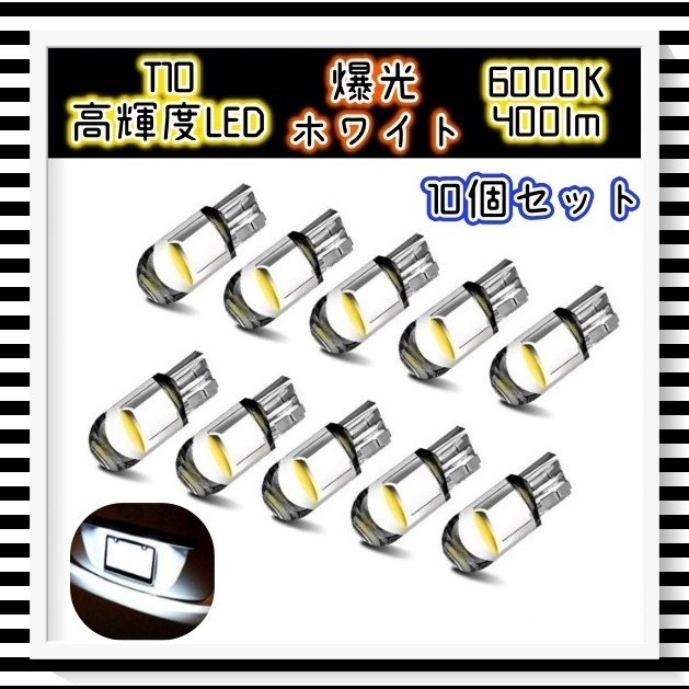> LEDバルブ 10個セット ポジション球 ルームランプ ナンバー灯 バックランプ ステップ スモール ホワイト 白 T10 ウェッジ球 12V 汎用