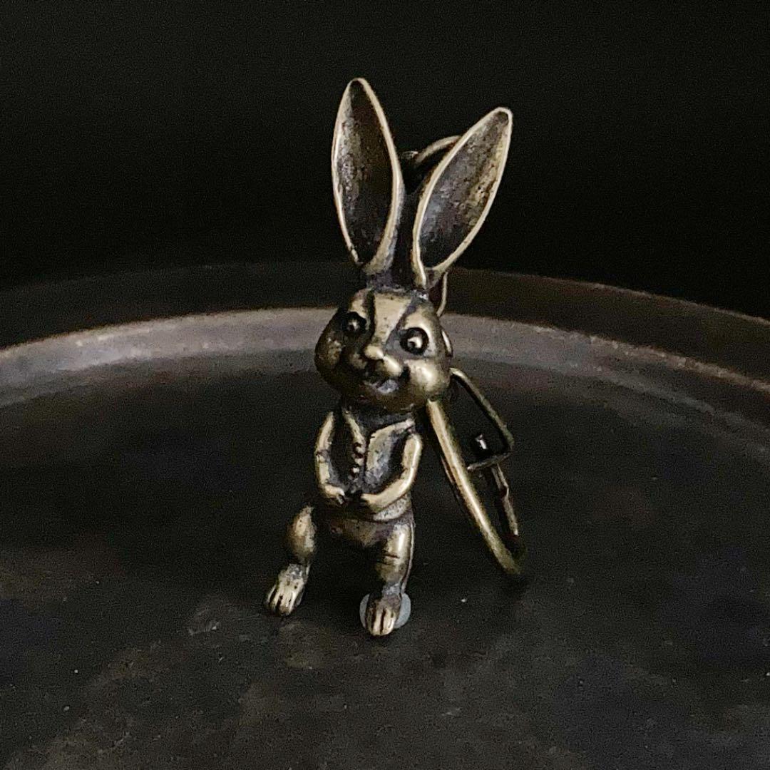 > 065 真鍮 キーホルダー うさぎ 兎 ウサギ ビンテージ レトロ アンティーク 真鍮製 チャーム アクセサリー パーツ ハンドメイド アメカジ