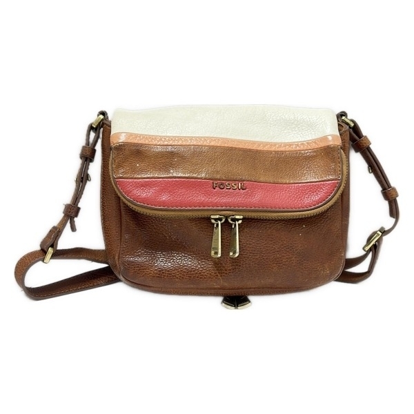 - フォッシル FOSSIL ショルダーバッグ - レザー ブラウン×白×ピンク バッグ