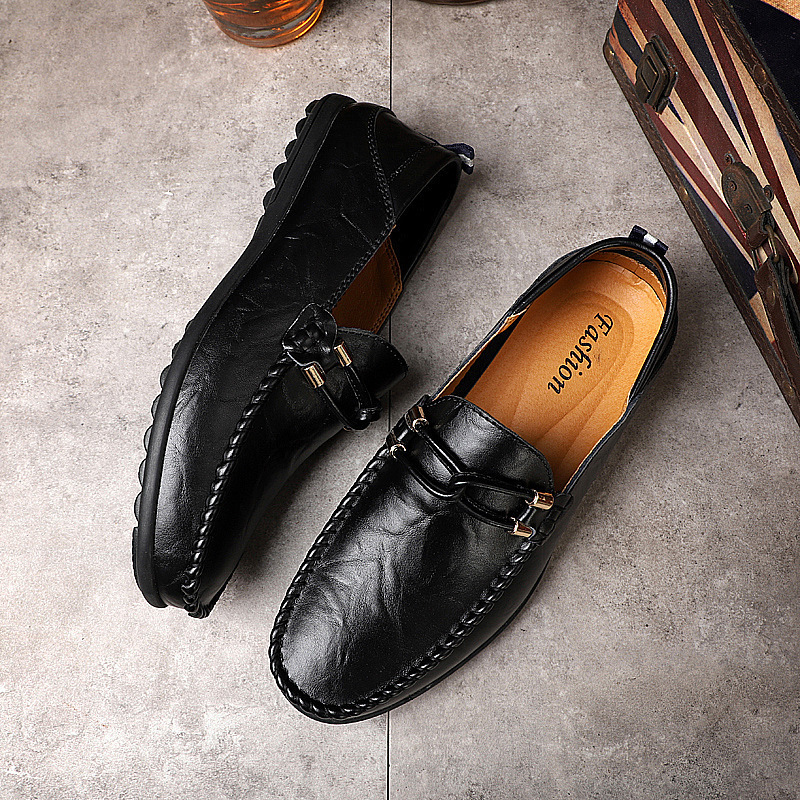 - メンズ 牛革 ローファー スリッポン 本革 レザーシューズ 軽量ドライビングシューズ 紳士靴 ビジネスシューズ ブラック 24cm~28.5cm