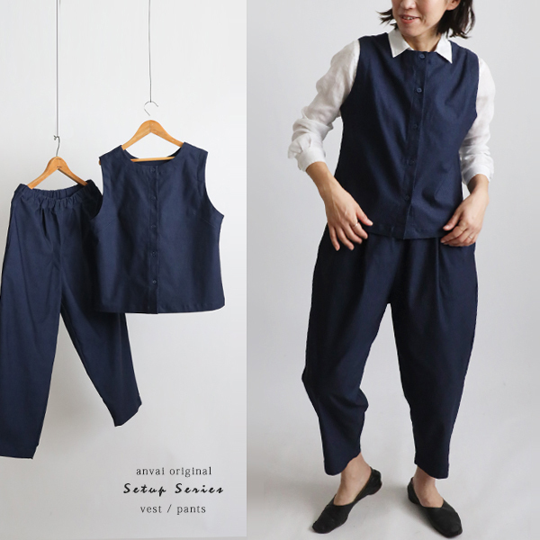 - 秋支度 斜横ぐーんと伸びる伸縮ストレッチ生地 上下セットアップ 自由自在2WAYベスト テーパード パンツ R19