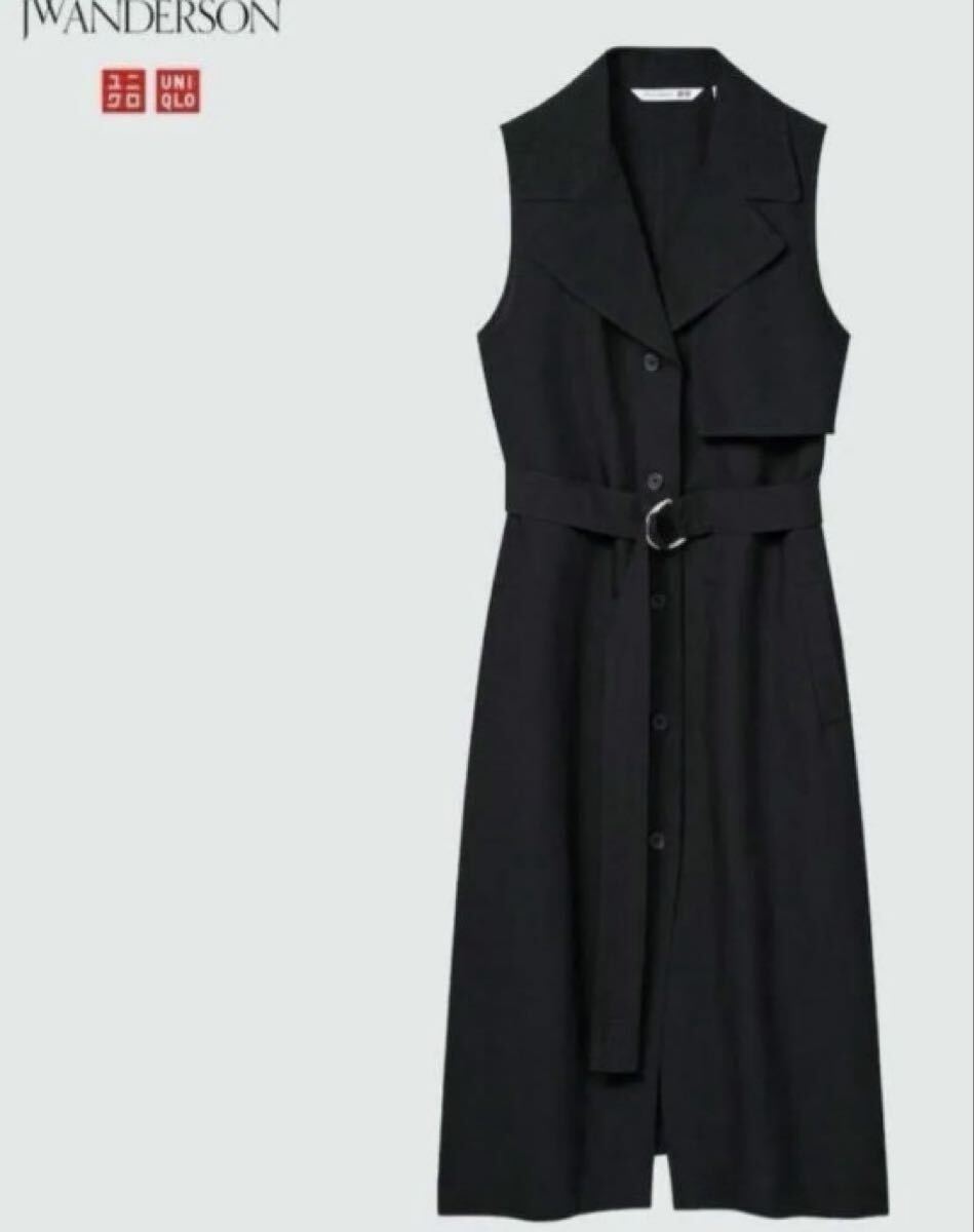 > 再↓秋★UNIQLO×JW ANDERSONユニクロ×アンダーソン★人気リネンブレンドラペルワンピース S ブラック ジレ 替えボタン付き