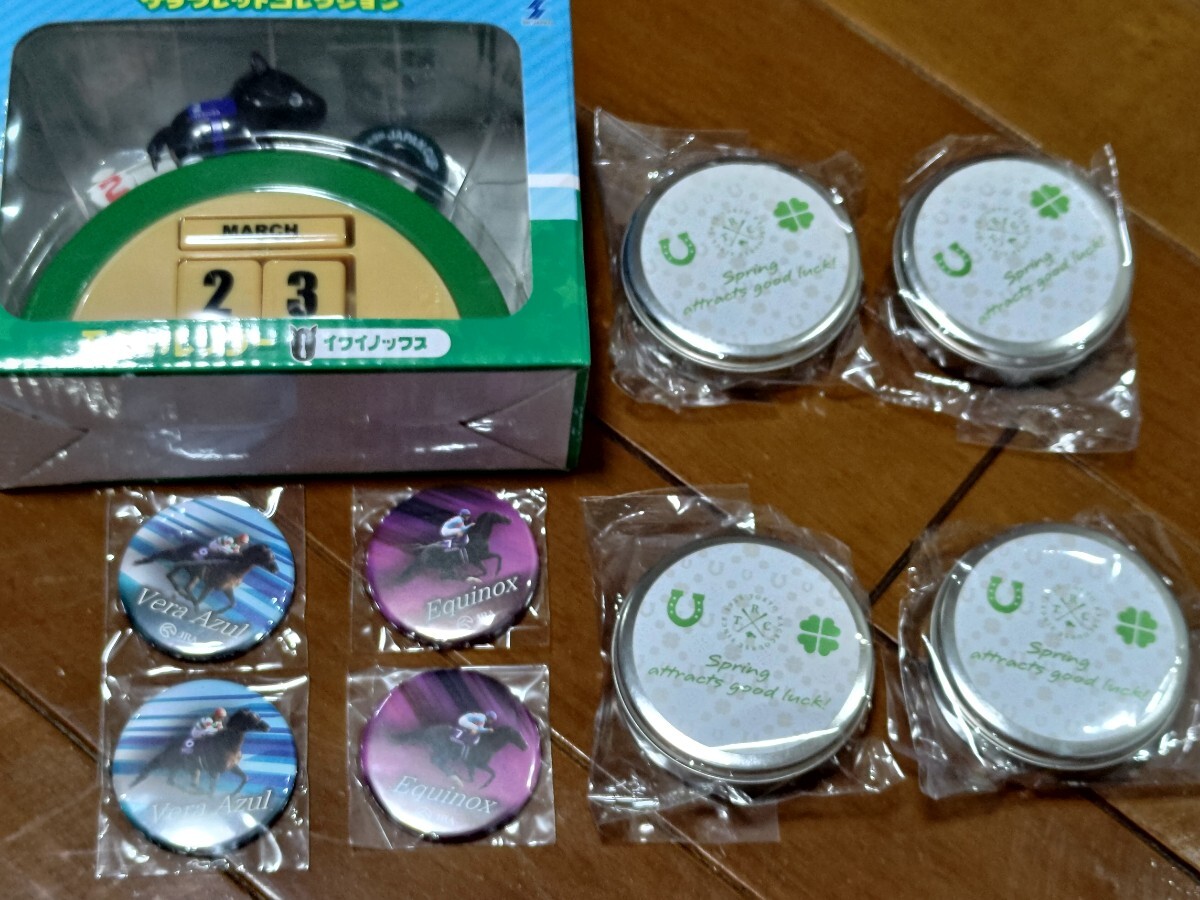- サラブレッドコレクション 万年カレンダー イクイノックス JRA東京競馬場 非売品 缶バッジ4枚 ハーブ栽培キット4種セット (未開封品)