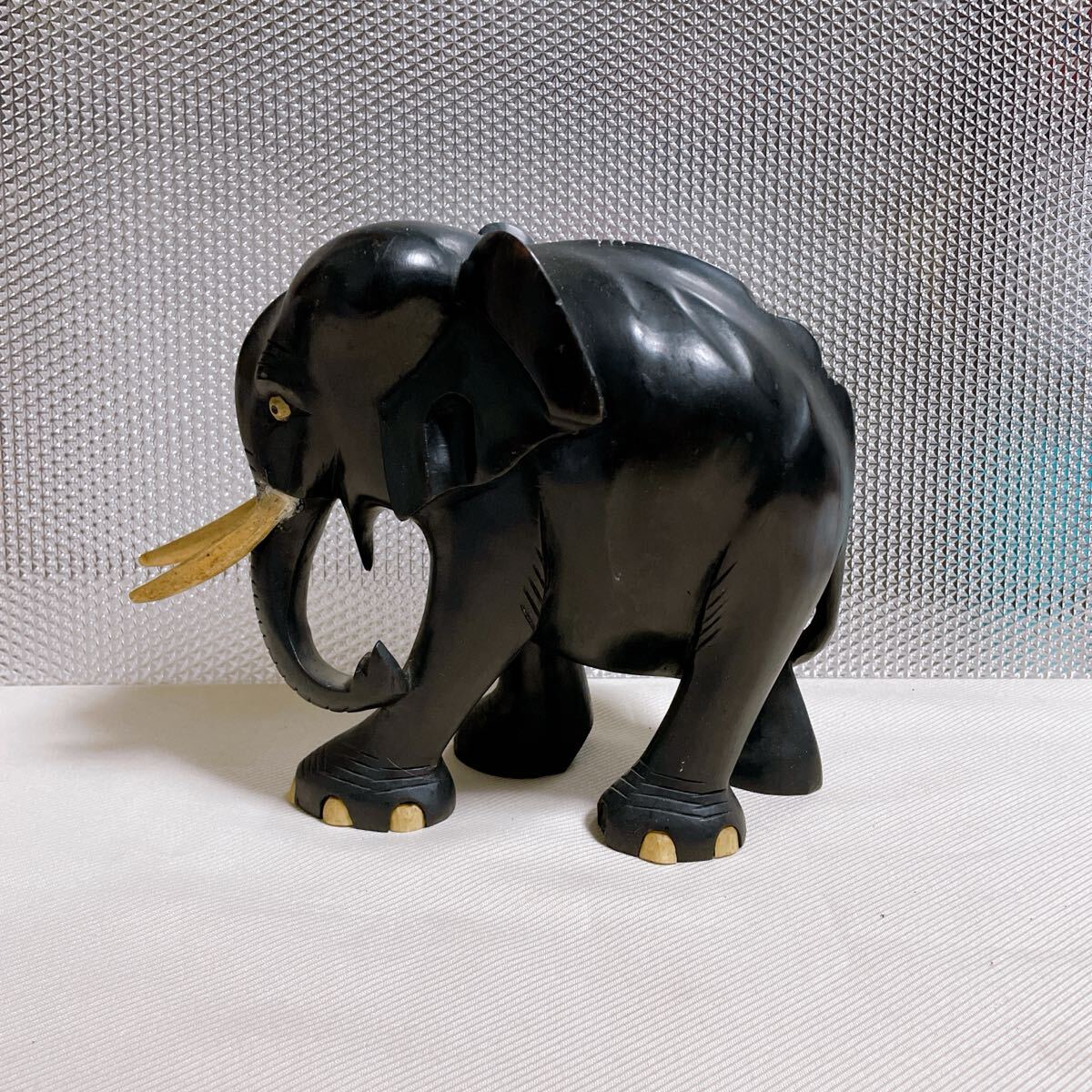 - H4. 象 木彫り象 黒檀 高さ 17.5cm 横22cm 重さ約2kg アンティーク