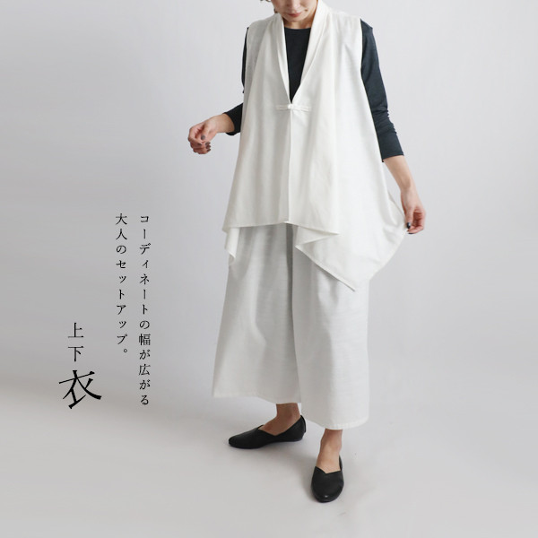 - 秋/最終SALE 上下セットアップ ギマ擬麻コットン 変形シャツ ジャケット ジレ ワイド パンツ 着物 和装 白ホワイトH85