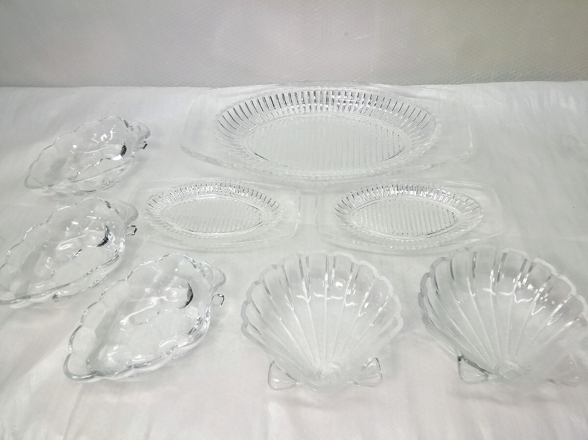 - ガラス皿 異形皿 異形鉢 葡萄形 貝殻形 楕円形まとめて (cv)