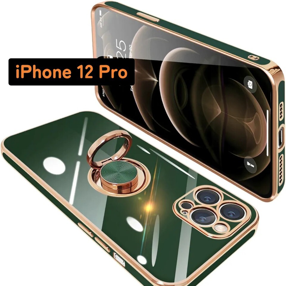 - iPhone12 pro ケース リング付き アイフォン12pro リング カバー 耐衝撃 スタンド機能 グリーン