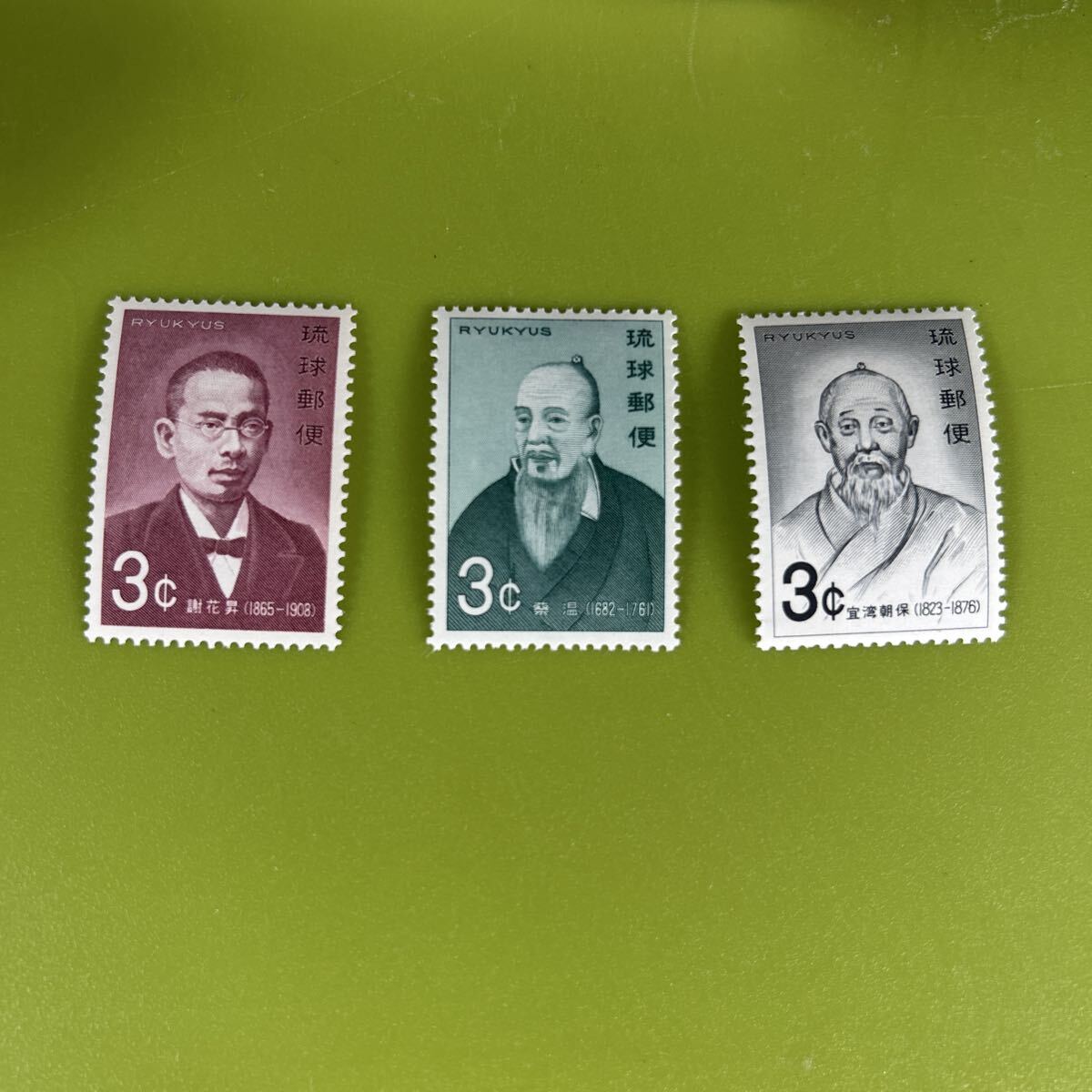 > ★未使用 琉球切手 偉人シリーズ 全3種セット 1970〜1971年 謝花昇 蔡温 宜湾朝保 政治家 コレクション コレクター 沖縄