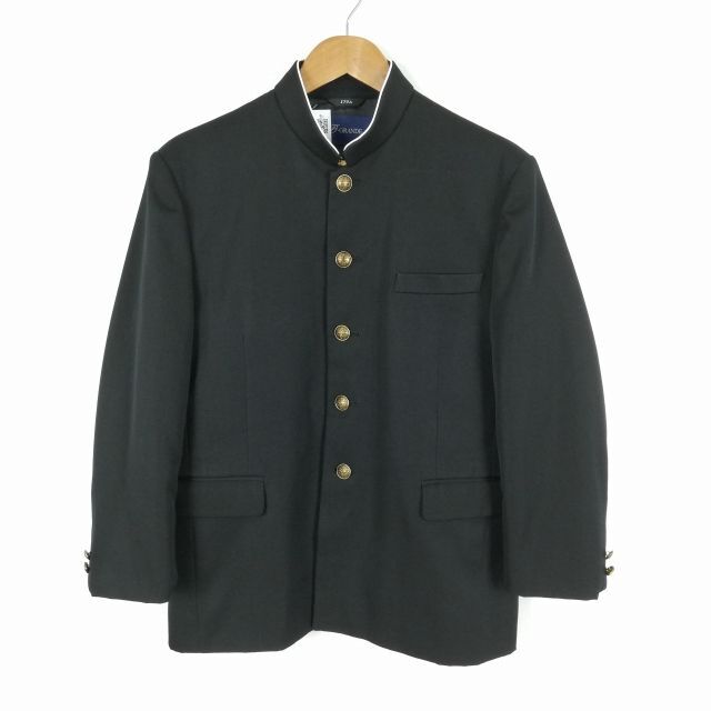 - 学生服 学ラン 170A 男子 上着 ウール混 ラウンドカラー カシドス 黒 中古 ランクC a3 JJ5823