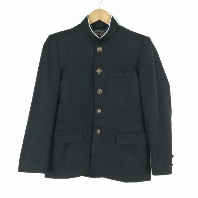 - 学生服 学ラン 155A 男子 上着 ウール混 標準型学生服 ラウンドカラー カシドス 黒 中古 ランクC a3 JJ5755