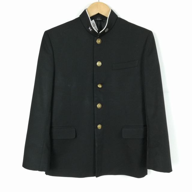 - 学生服 学ラン 165A 男子 上着 ウール混 標準型学生服 ラウンドカラー カシドス 黒 中古 ランクC a3 JJ5768