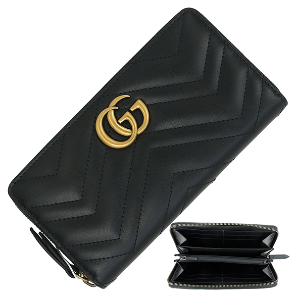 - グッチ 長財布 ダブルG ジップアラウンドウォレット GGマーモント ブラック 4398