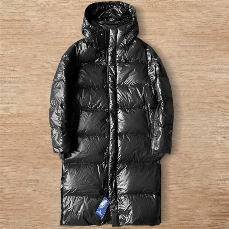 - W9827-XL/黒色系 「軽くて暖かい!」DCKMANY新品 メンズ 超ロング丈 ダウンジャケット ダウン90% 厚 軽量 防寒 保温 フード付き アウター