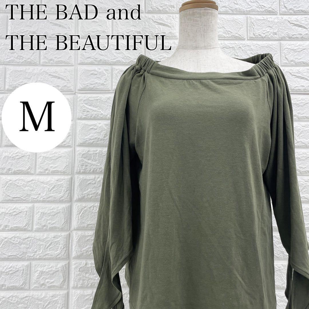 - 【AA4291】THE BAD and THE BEAUTIFUL ザバッドアンドザビューティフル カットソー カーキ 無地 ドレープ袖 オフショルダー