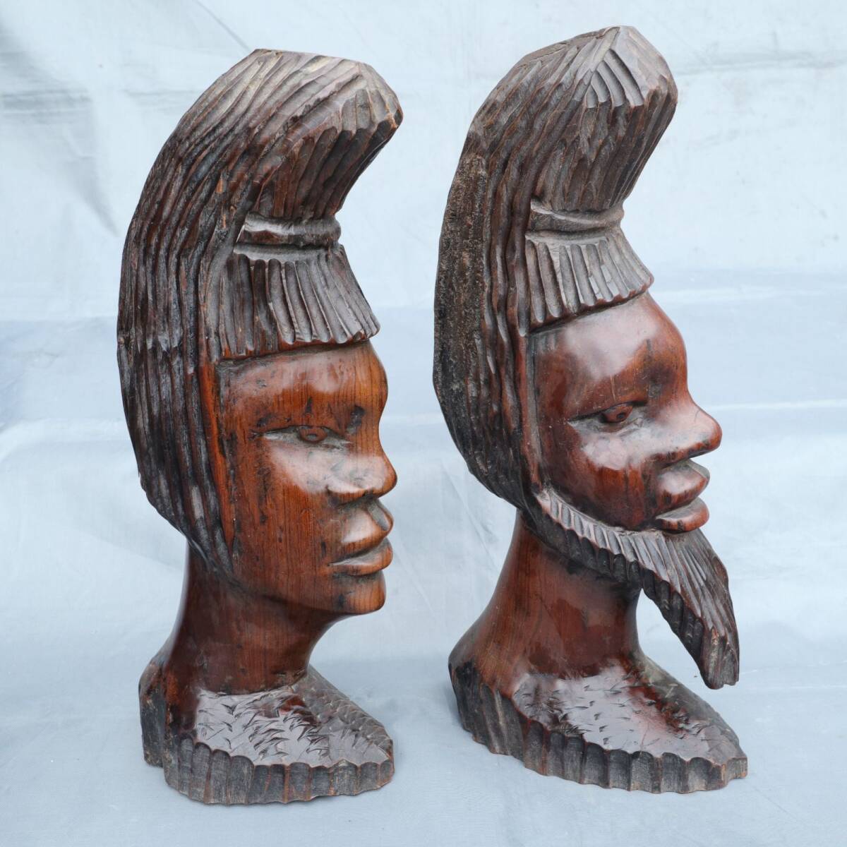 - 【ビンテージ/アンティーク】1950年代 ウッドマンヘッド アフリカン ハンドメイド 木彫り バスト像 ペア m0905-9