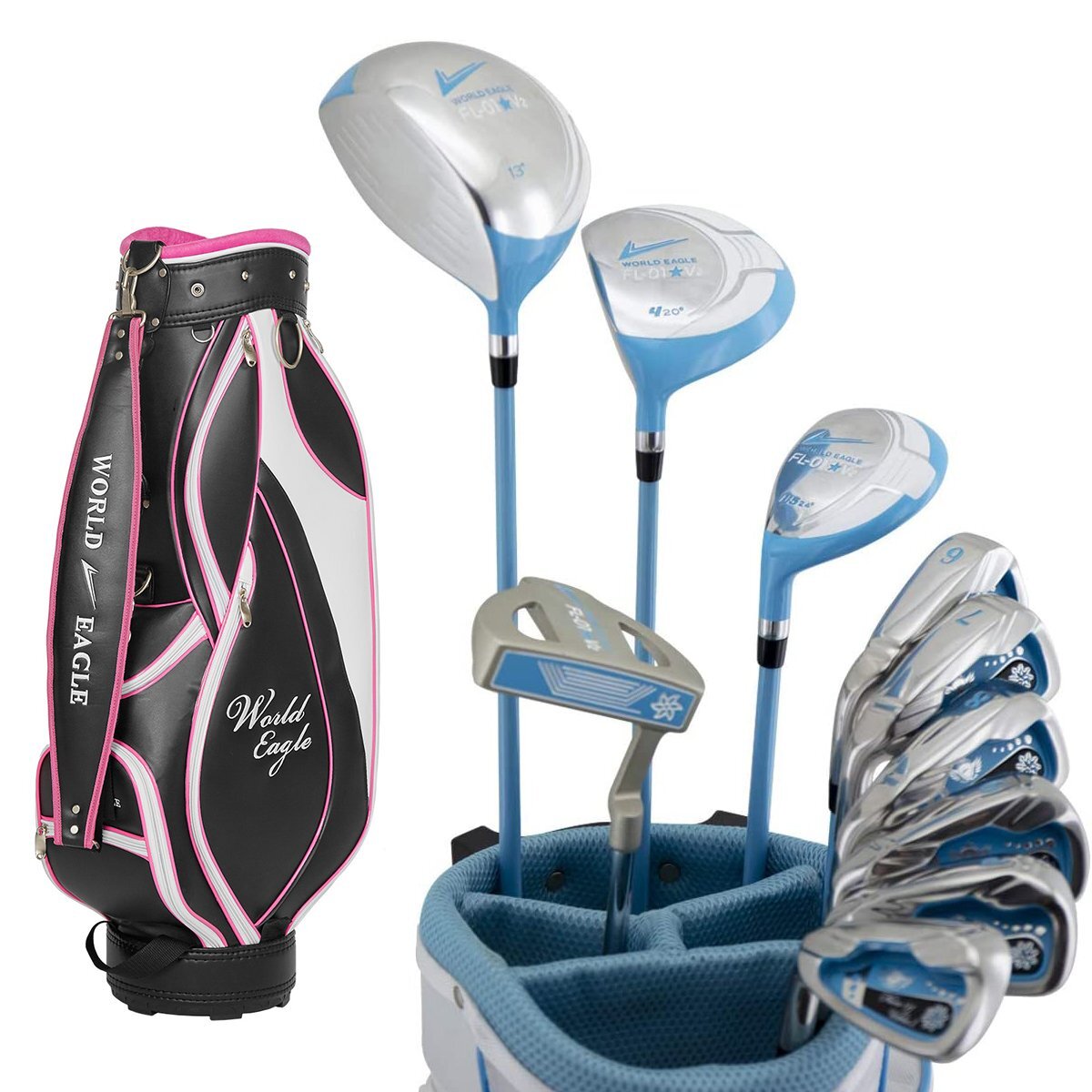 > FL-01★V2レディースゴルフクラブセット 高級志向キャディバッグ付 【ブラックベリーバッグ】【アクアブルークラブ】左利き用[36660]