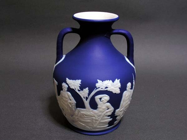 - ◎1900年代 ウェッジウッド 青色を被せた白のジャスパー ポートランドの壷◎貴重