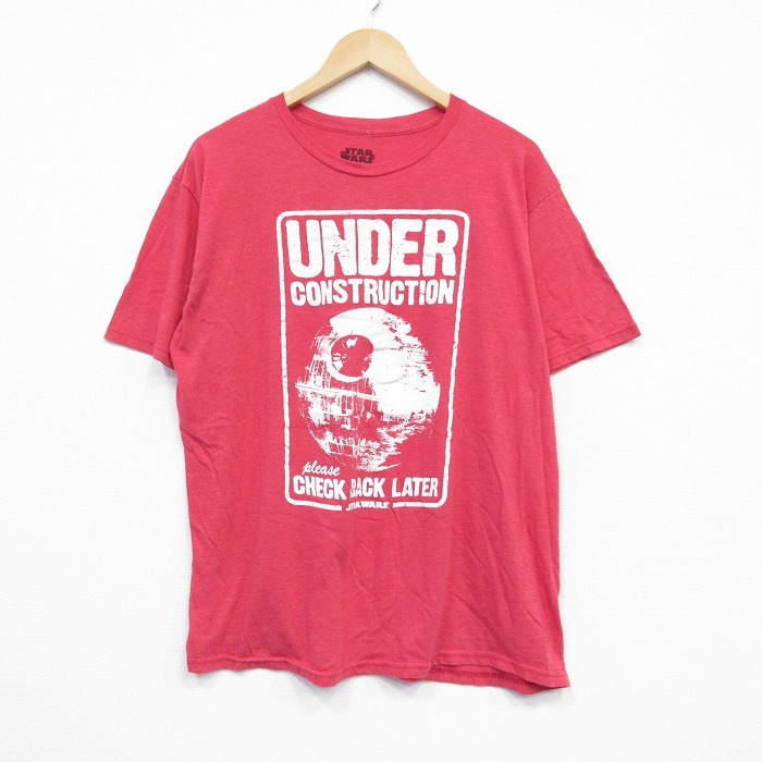 - XL/古着 半袖 Tシャツ メンズ スターウォーズ STAR WARS デススター クルーネック 赤 レッド 霜降り 25aug29 中古