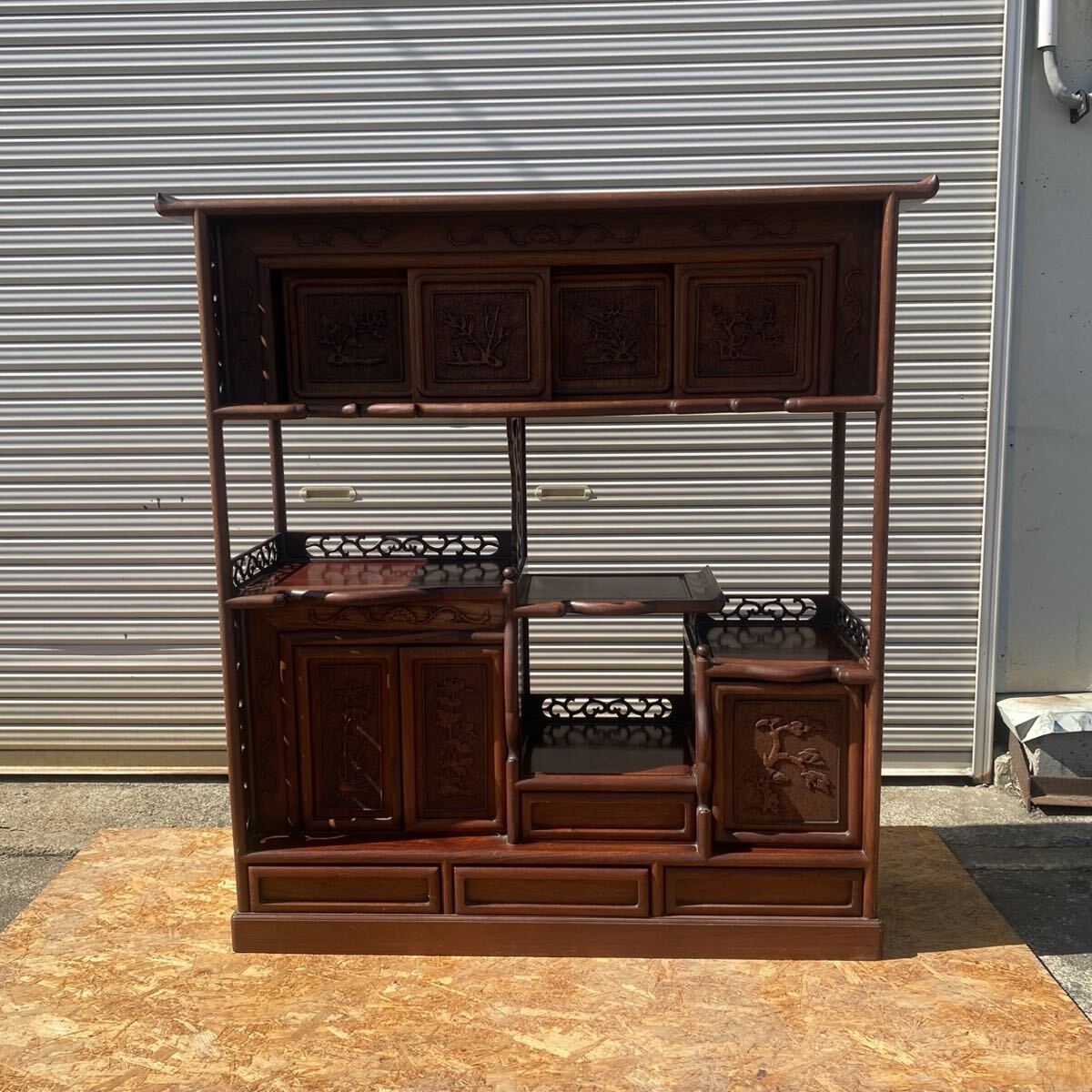 - M0906711B 茶箪笥 飾棚 和風家具 違い棚 和家具 茶棚 透かし彫り 昭和レトロ アンティーク 当時物 中古品 茶棚 昭和レトロ 和家具 宮城県