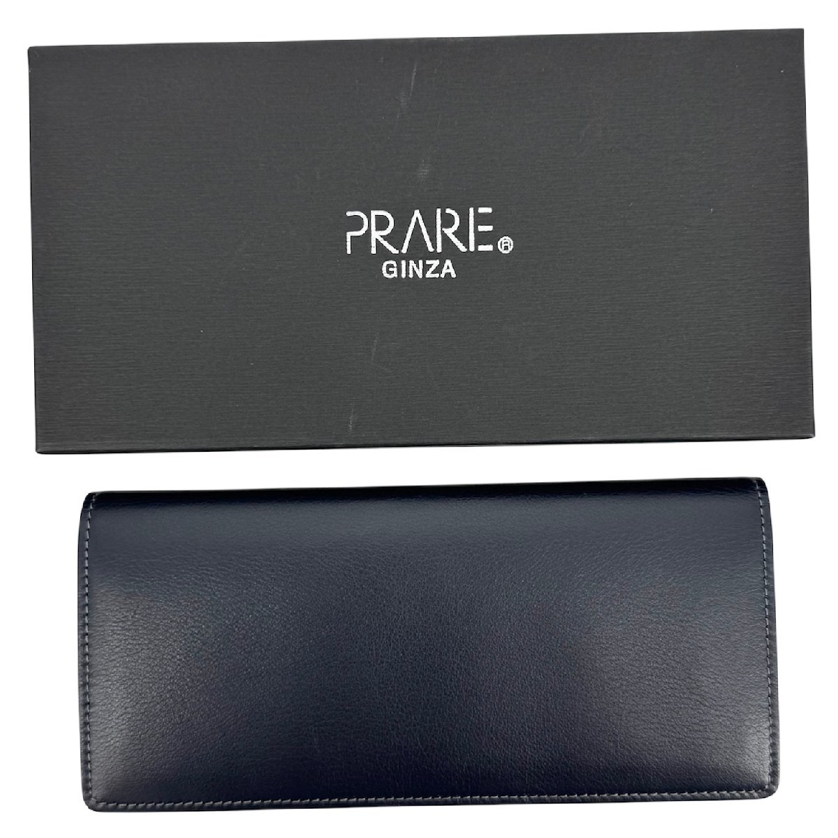 - 未使用品 PRAIRIE プレリー 仏デュプイ社製 ボックス カーフ レザー 牛革 本革 二つ折り 長財布 小銭入れあり NPX4020 紺/ネイビー 日本製
