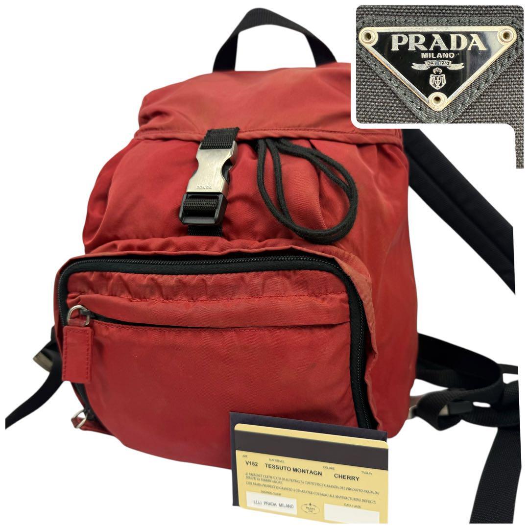 > 【Gカード付き V152】PRADA プラダ リュックサック バックパック 三角ロゴプレート テスートナイロン 赤系 レッド 白タグ LAMPOジップ