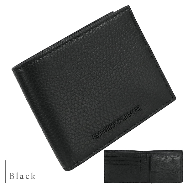 - エンポリオアルマーニ 財布 二つ折り財布 コインポケットウォレット タンブルレザー ブラック 155928