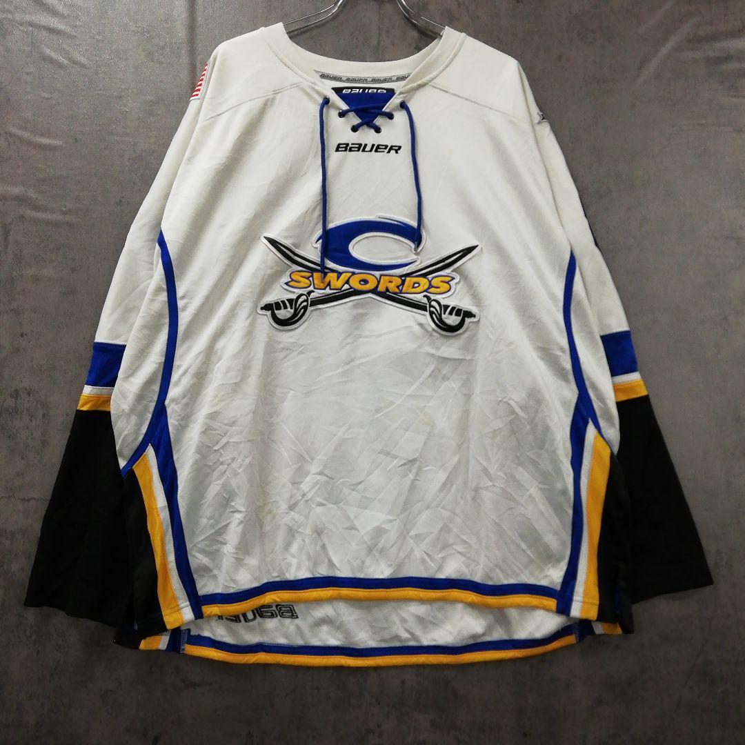 - バウアー ホッケーユニフォーム 白 青黄ライン TEAMモデル XL【5640】