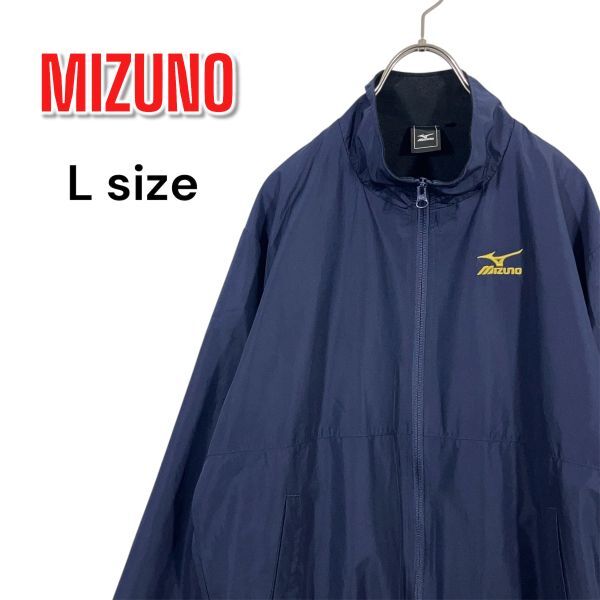 > MIZUNO ミズノ ウインドブレーカー ジャケット 裏起毛 ネイビー 紺 Lサイズ スポーツ フルジップ