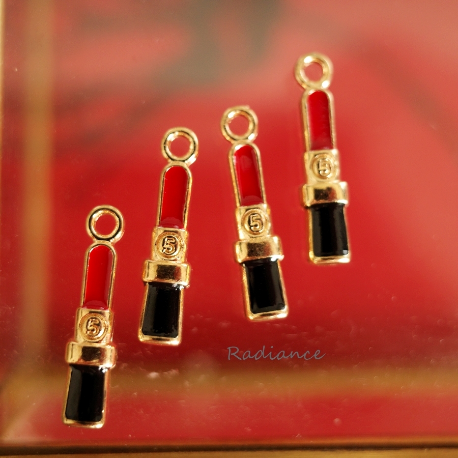 - SALE☆口紅チャーム☆ミニミニサイズ☆ハンドメイド素材☆チャーム☆ゴールド☆赤☆ラインストーン☆