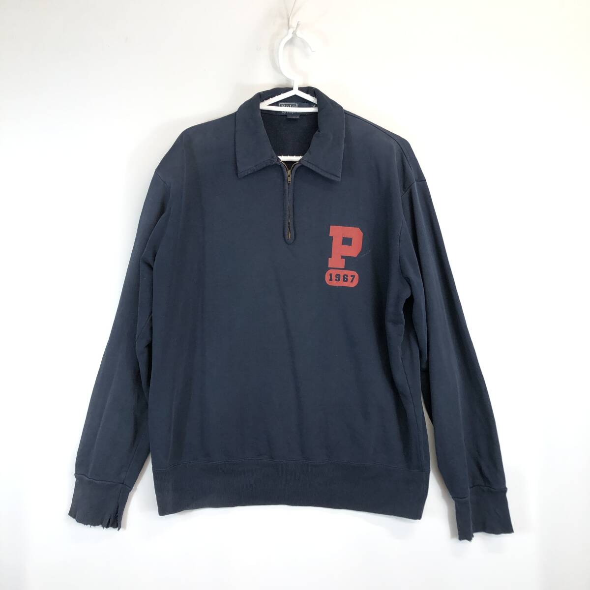 > 90s 香港製 Ralph Lauren ラルフローレン 襟付き ハーフジップ スウェット Mサイズ ダークネイビー
