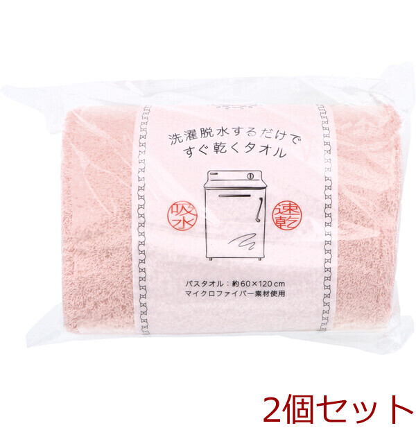 - 洗濯脱水するだけですぐ乾くタオル2 バスタオル 約60×120cm ライトピンク 1枚入 2セット