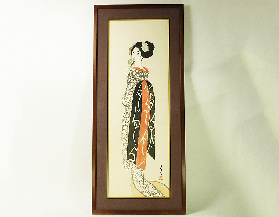 - 竹久夢二 舞姫 美人画 木版画 額装(共シール)彫・摺 松永安生 黒猫屋版 限定50部(専用箱 黄袋)長期保管品n25090702