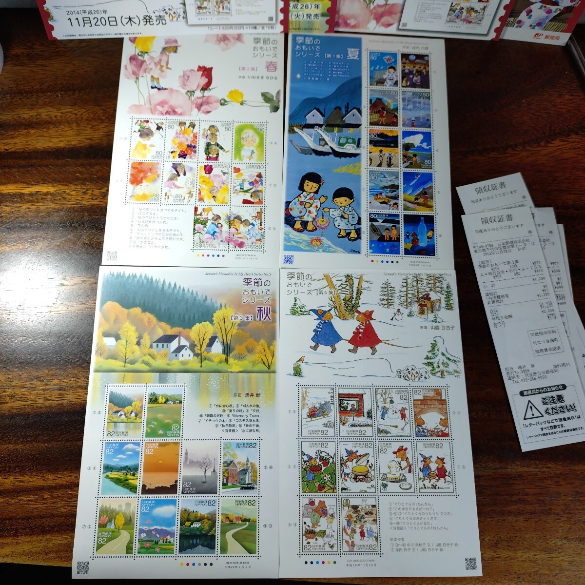- 特殊切手 季節のおもいでシリーズ 夏春秋冬4集2012~2014年 ¥80×10-2 シート ¥82×10-2シートパンフレット レシート付