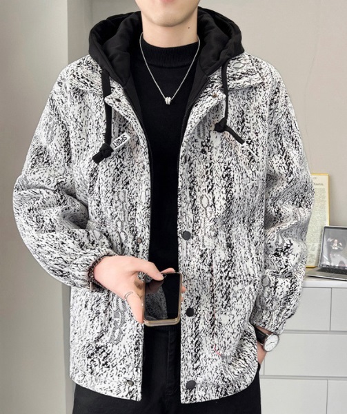 - 新作 秋冬 カジュアルジャケット 裏ボア ブルゾン フェイクインナー 作業服 厚手 アウターフード付き 黒白/L