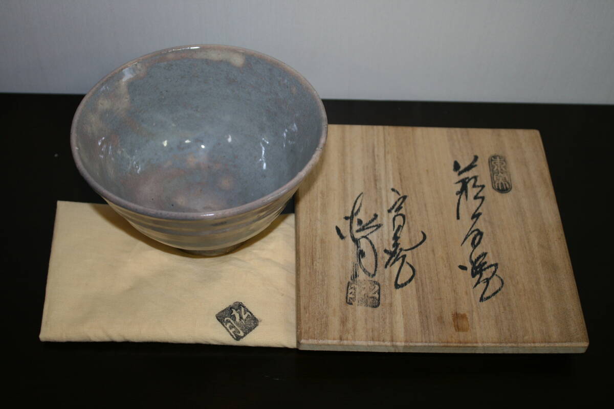 - ▽美▽ ★ 極上美品 ★ 萩焼「 玉村松月 」抹茶茶碗 共布 共箱 東窯 上作(エ)☆ 松月 本窯元 江風庵 茶碗 【売切れ御免 / 遺品整理】