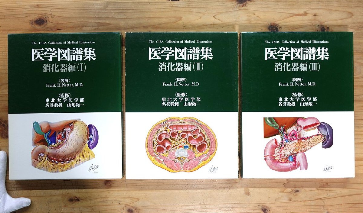 - 【医学図譜集-消化器編 全3冊揃/昭和56-57年・日本チバガイギー】人体イラスト/解剖図/上部・下部消化管/肝臓,膵臓,胆道