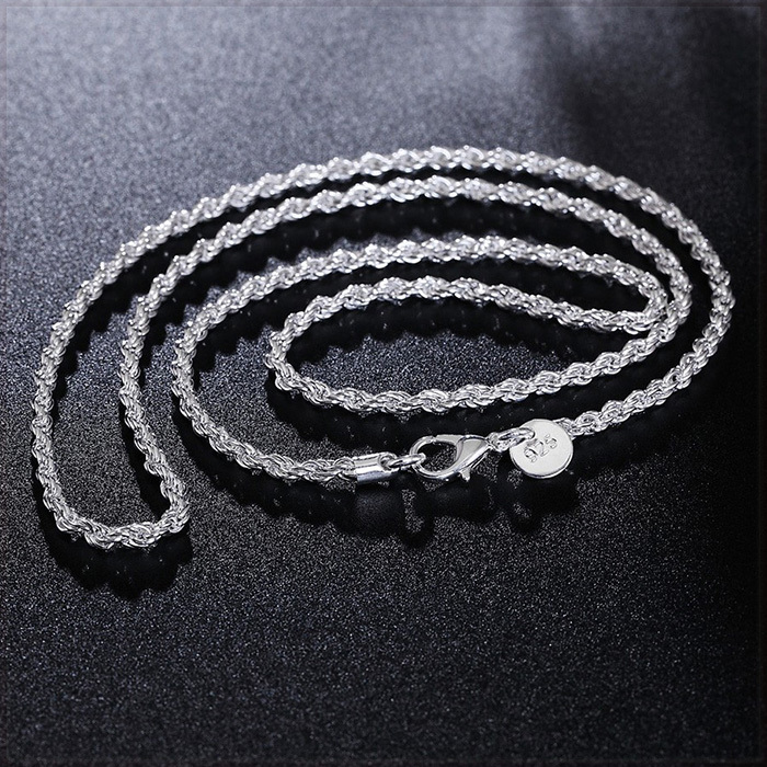 - [NECKLACE] 925 Sterling Silver Plated Rope Chain スリム ツイスト ロープ チェーン シルバー ネックレス 2.8x600mm (12g)【送料無料】