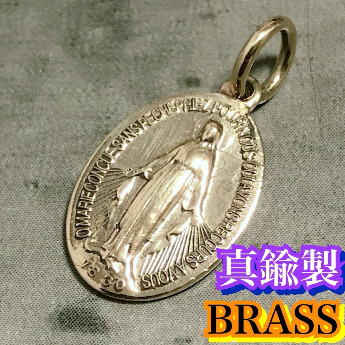 - 【 送料込み 】 真鍮製 聖母 マリア メダイ 奇跡のメダイユ チャーム ペンダント トップ ネックレス BRASS ブラス メダイユ