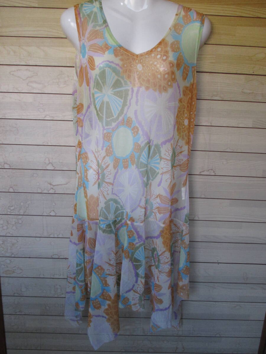 - 即決★シアー素材のノースリーブワンピース★オレンジ系