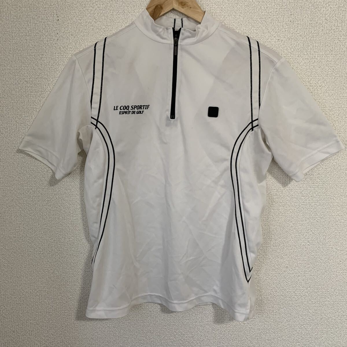 - 【USED】 le coq sportif golf ルコックゴルフ半袖Tシャツ ハーフジップ レディースMサイズ 白 ラウンド 練習着 デサント